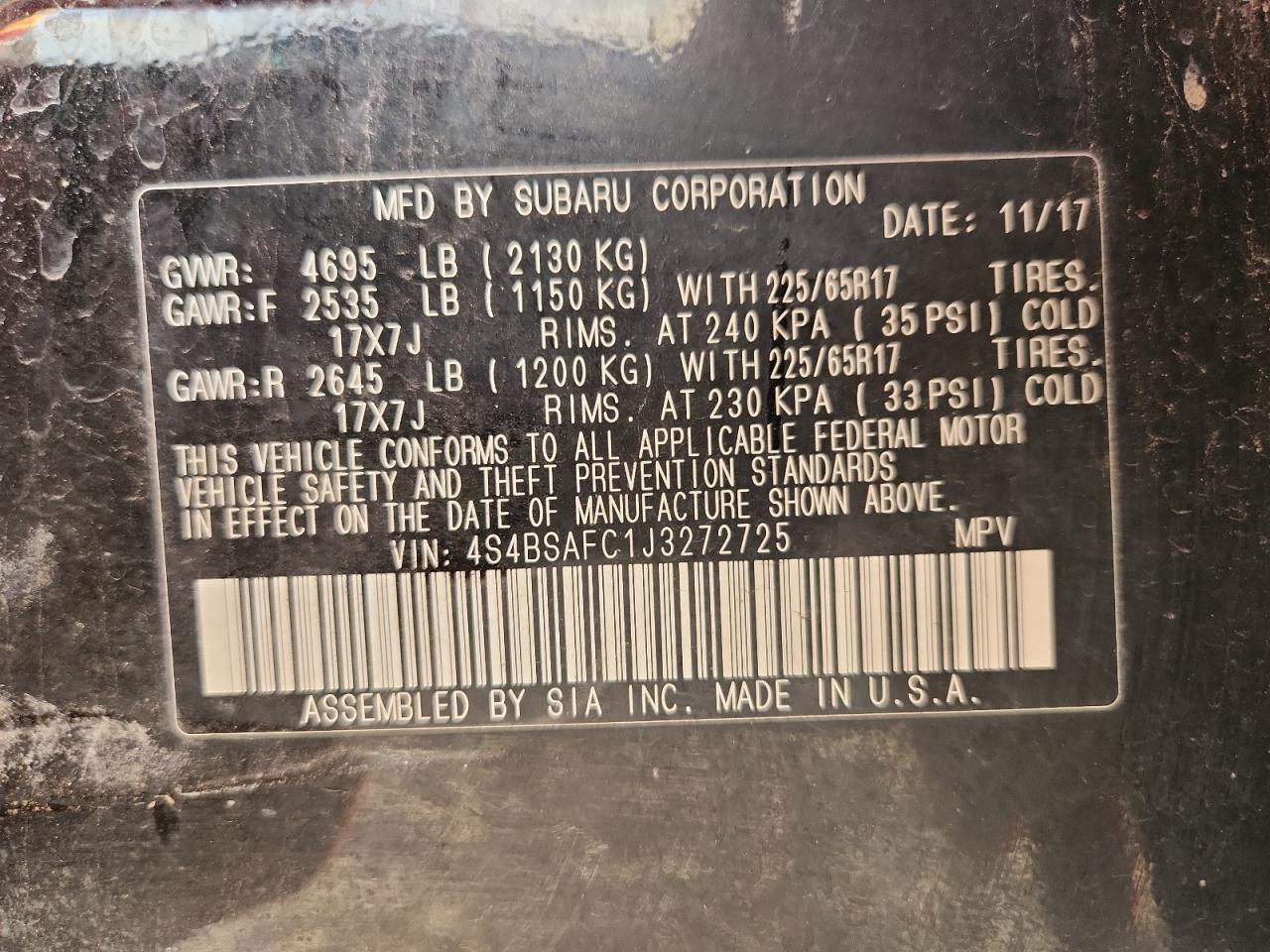 SUBARU OUTBACK 2.5 2018 р.в., Повний привід (4S4BSAFC1J3272725) з США