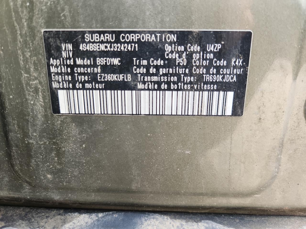 SUBARU OUTBACK 3.6 2018 р.в., Повний привід (4S4BSENCXJ3242471) з США