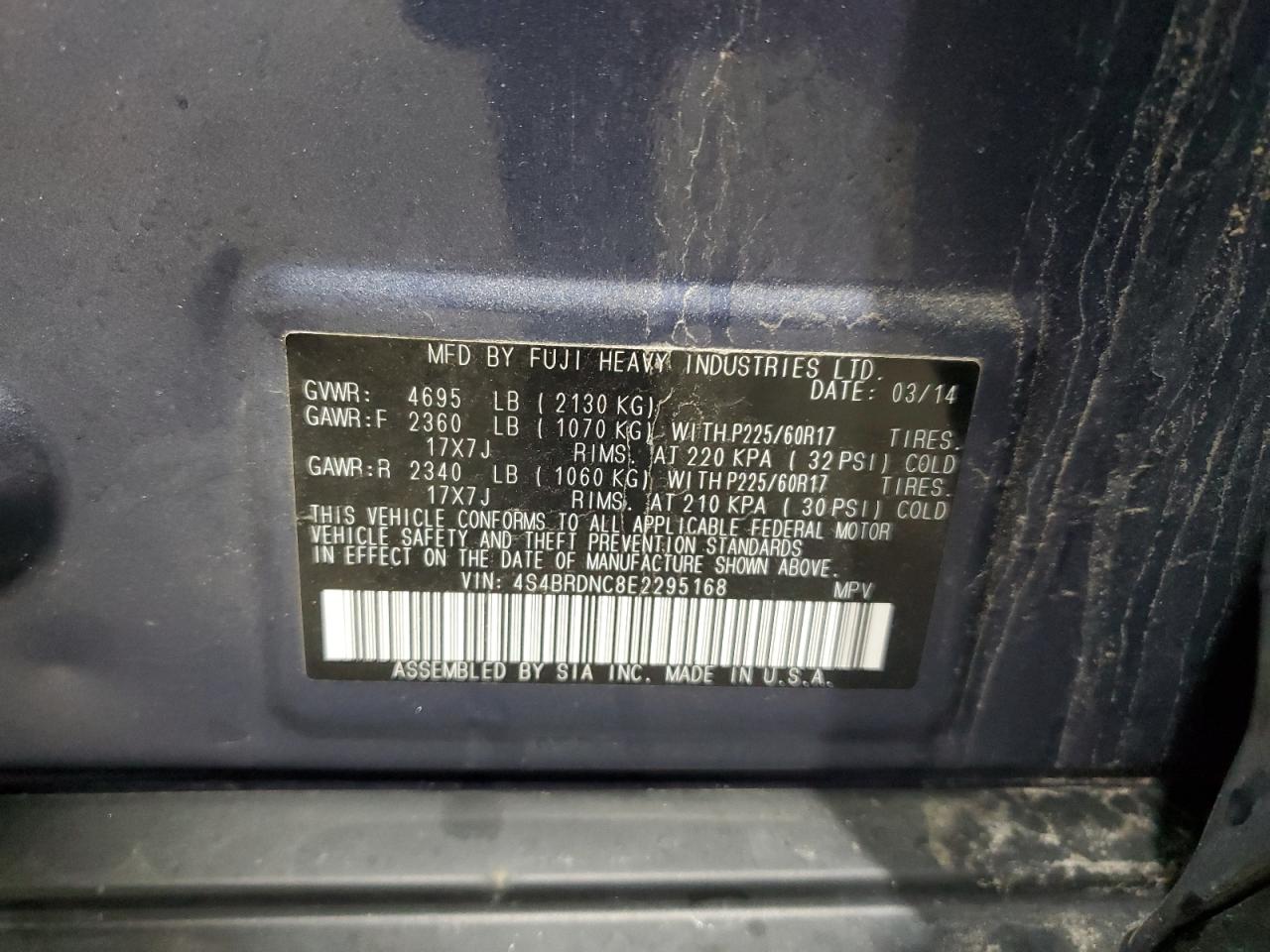 SUBARU OUTBACK 3.6 2014 р.в., Повний привід (4S4BRDNC8E2295168) з США