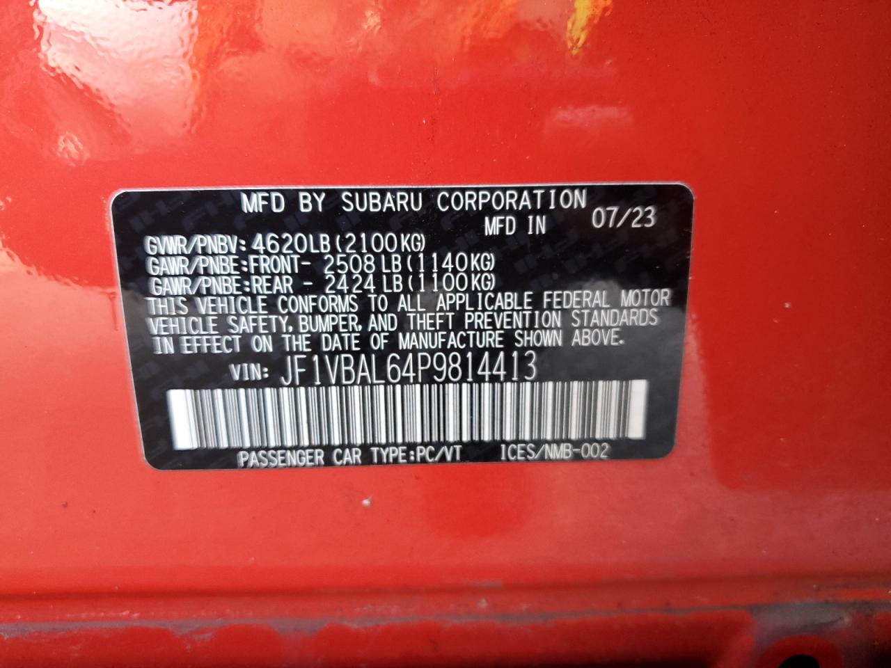 SUBARU WRX 2.5 2023 р.в., Повний привід (JF1VBAL64P9814413) з США