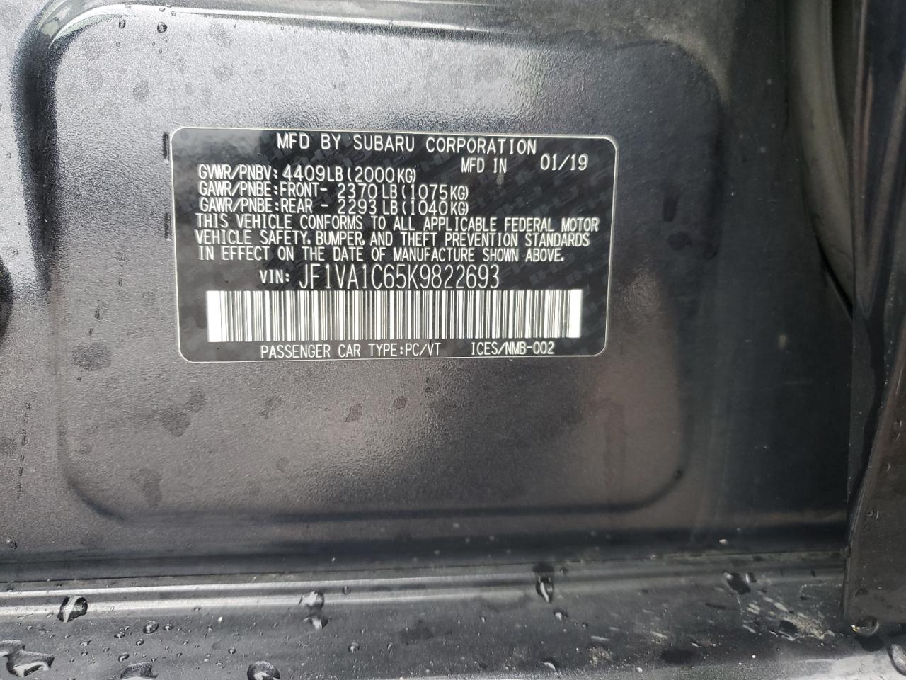 SUBARU WRX 2.0 2019 р.в., Повний привід (JF1VA1C65K9822693) з США