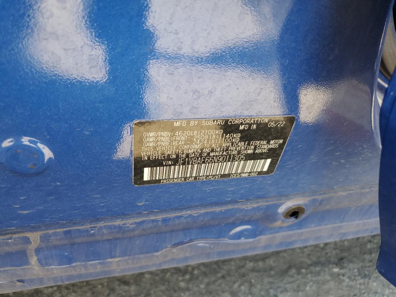 SUBARU WRX 2.5 2022 р.в., Повний привід (JF1VBAF66N9011305) з США