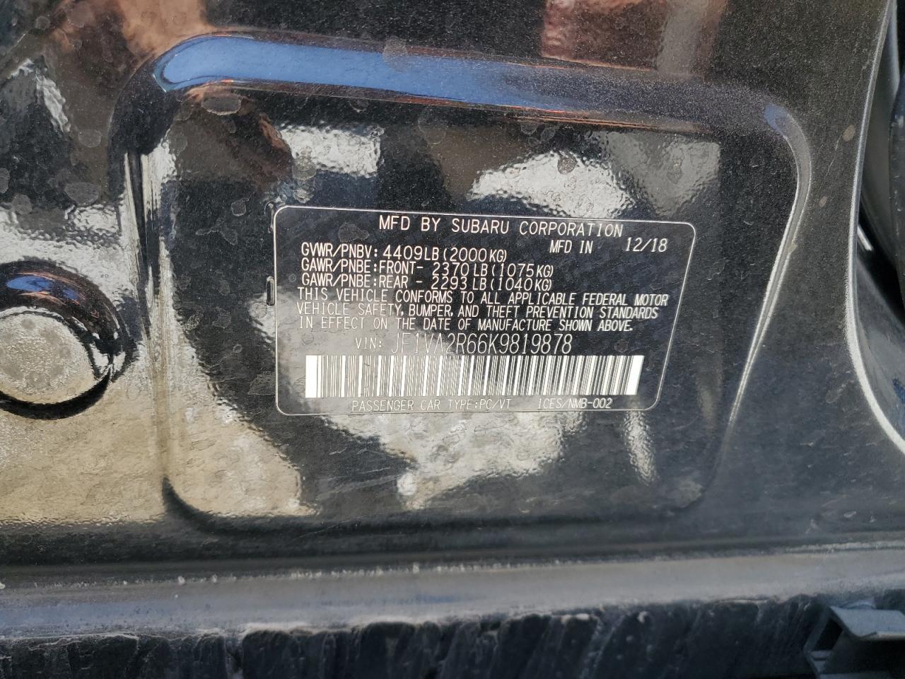 SUBARU WRX 2.5 2019 р.в., Повний привід (JF1VA2R66K9819878) з США