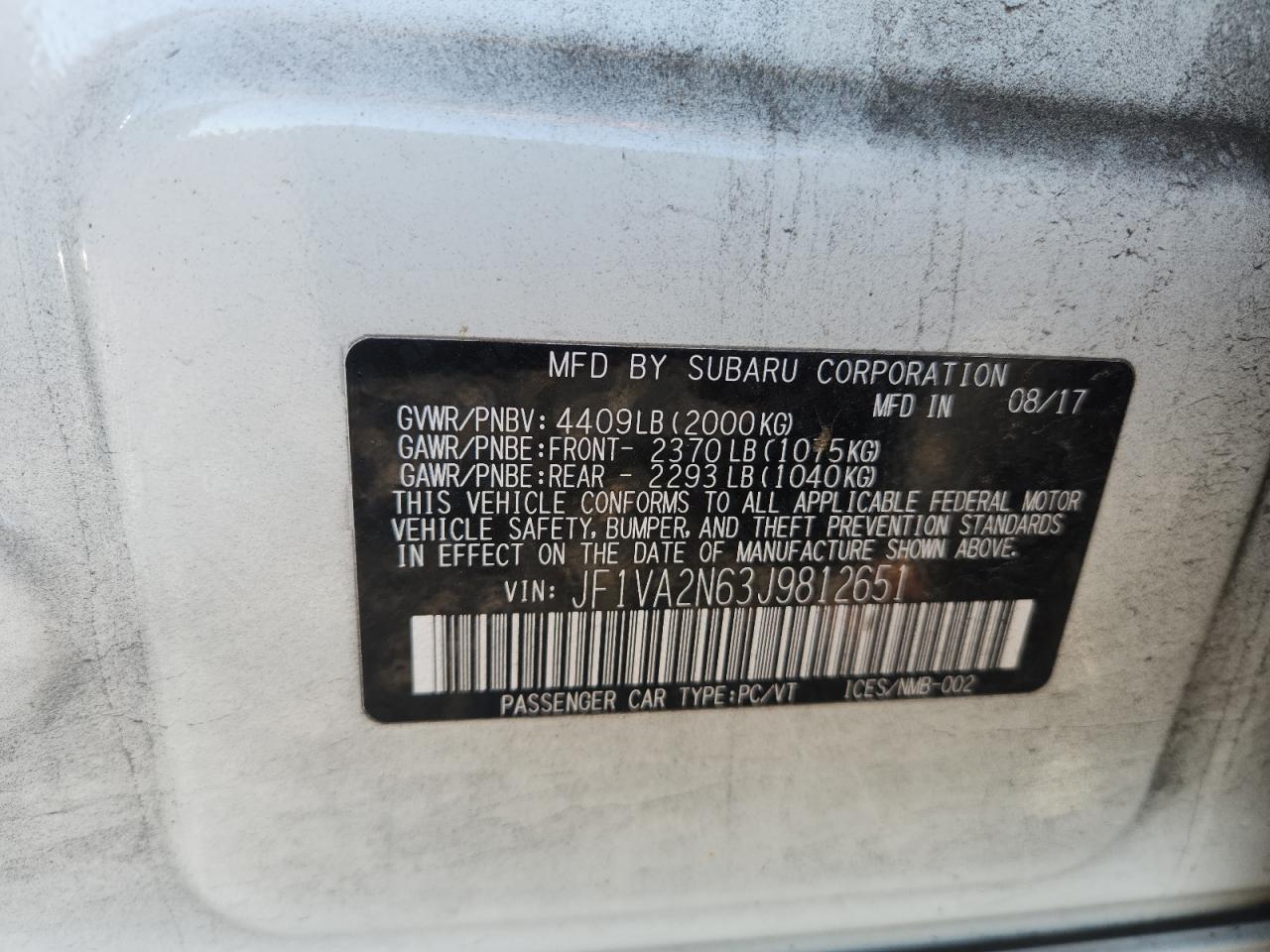 SUBARU WRX 2.5 2018 р.в., Повний привід (JF1VA2N63J9812651) з США