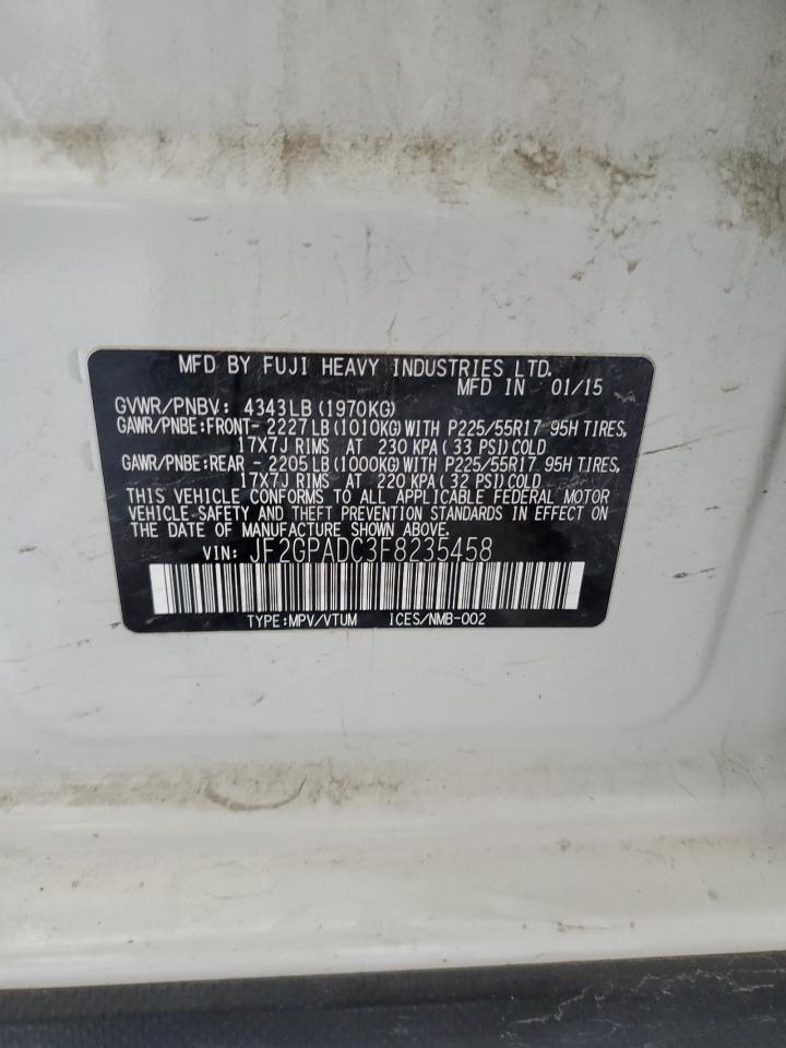 Колір БілийЦиліндри 4Привід Повний привідVIN JF2GPADC3F8235458Стан НевідомоУшкодження Передня або задня