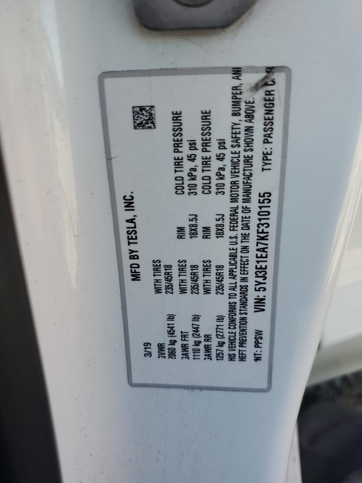 TESLA MODEL 3 2019 р.в., Задній привід (5YJ3E1EA7KF310155) з США