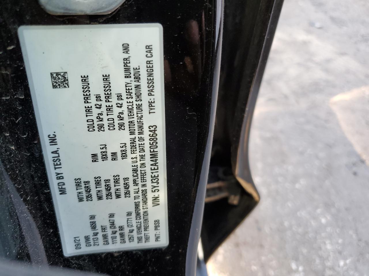 TESLA MODEL 3 2021 р.в., Задній привід (5YJ3E1EA4MF058643) з США