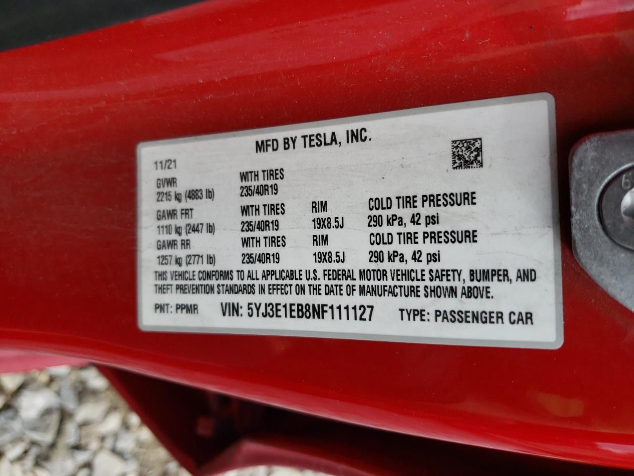 TESLA MODEL 3 2022 р.в., Повний привід (5YJ3E1EB8NF111127) з США