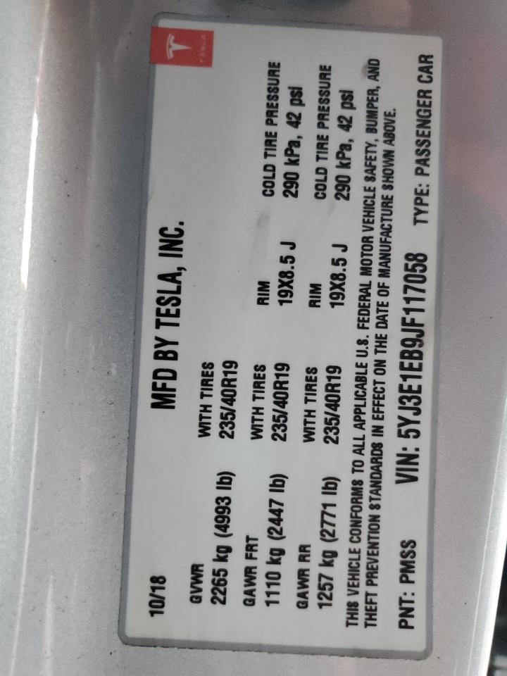 2018 TESLA MODEL 3 LONG RANGE/MID RANGE
