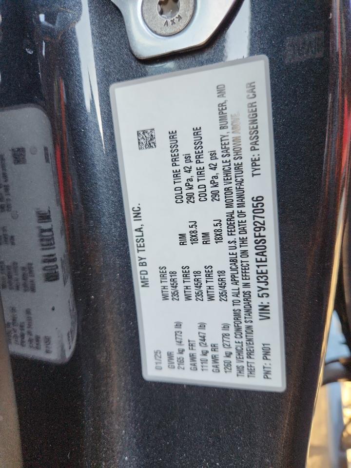 TESLA MODEL 3 2025 р.в., Задній привід (5YJ3E1EA0SF927056) з США