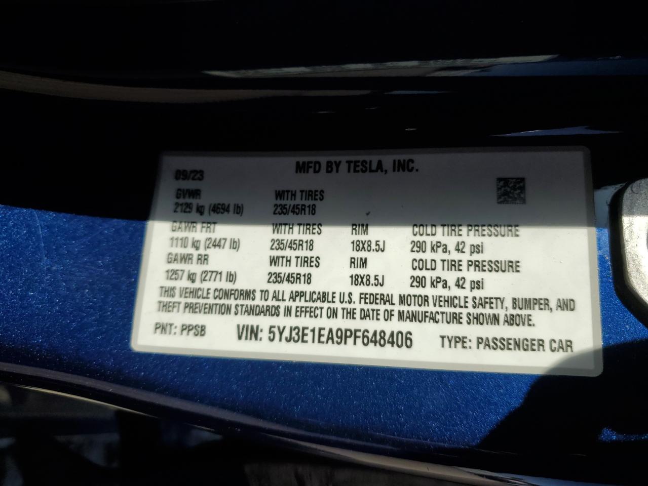 TESLA MODEL 3 2023 р.в., Задній привід (5YJ3E1EA9PF648406) з США