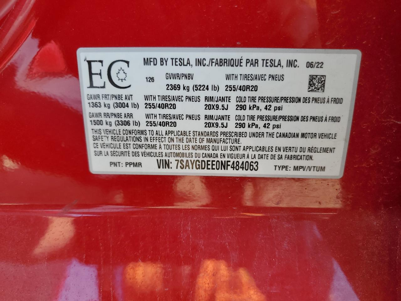 TESLA MODEL Y 2022 р.в., Повний привід (7SAYGDEE0NF484063) з США