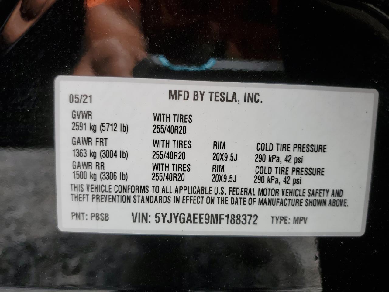 TESLA MODEL Y 2021 р.в., Повний привід (5YJYGAEE9MF188372) з США