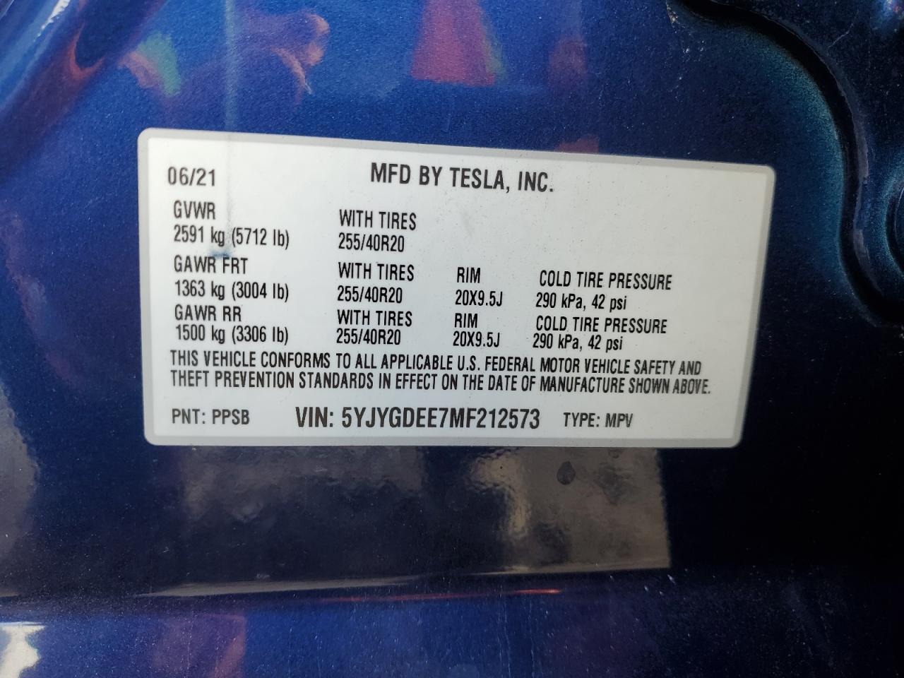 TESLA MODEL Y 2021 р.в., Повний привід (5YJYGDEE7MF212573) з США