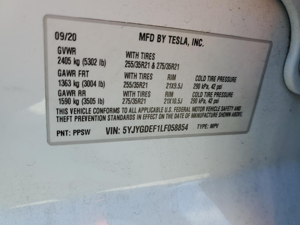 2020 TESLA MODEL Y