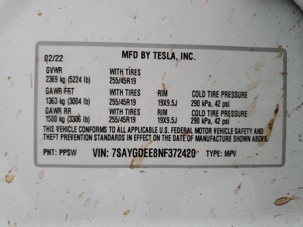 TESLA MODEL Y 2022 р.в., Повний привід (7SAYGDEE8NF372420) з США