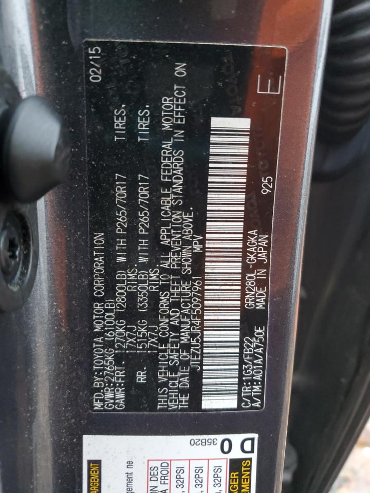 TOYOTA 4RUNNER 4.0 2015 р.в., Задній привід (JTEZU5JR4F5097961) з США