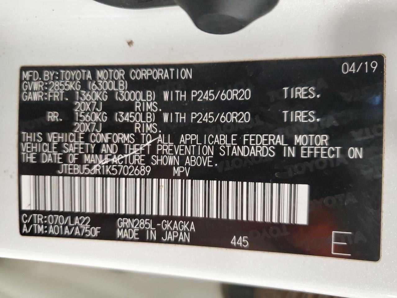 TOYOTA 4RUNNER 4.0 2019 р.в., 4x4 з заднім приводом (JTEBU5JR1K5702689) з США