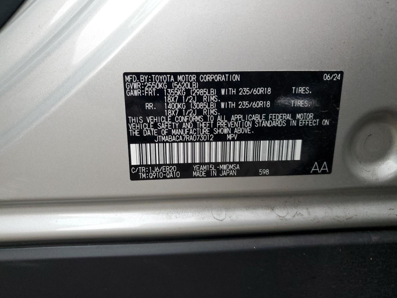 Колір СрібнийЦиліндри 0Привід Повний привідVIN JTMABACA7RA073012Стан ЗаводитьсяУшкодження З боків