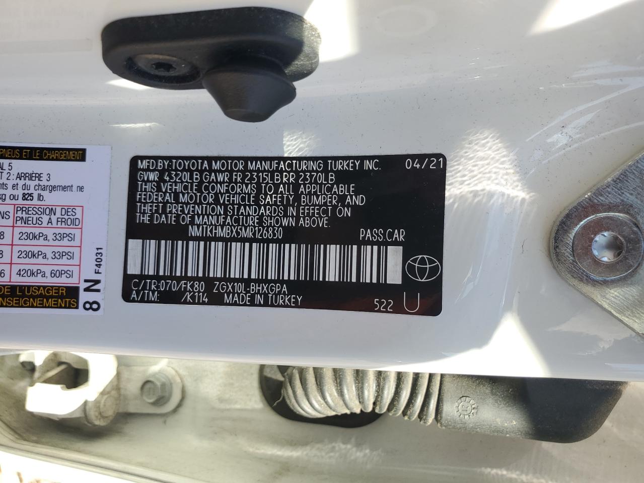 Колір БілийЦиліндри 4VIN NMTKHMBX5MR126830Стан Заводиться та їде (перевірено)Ушкодження Передня або задня