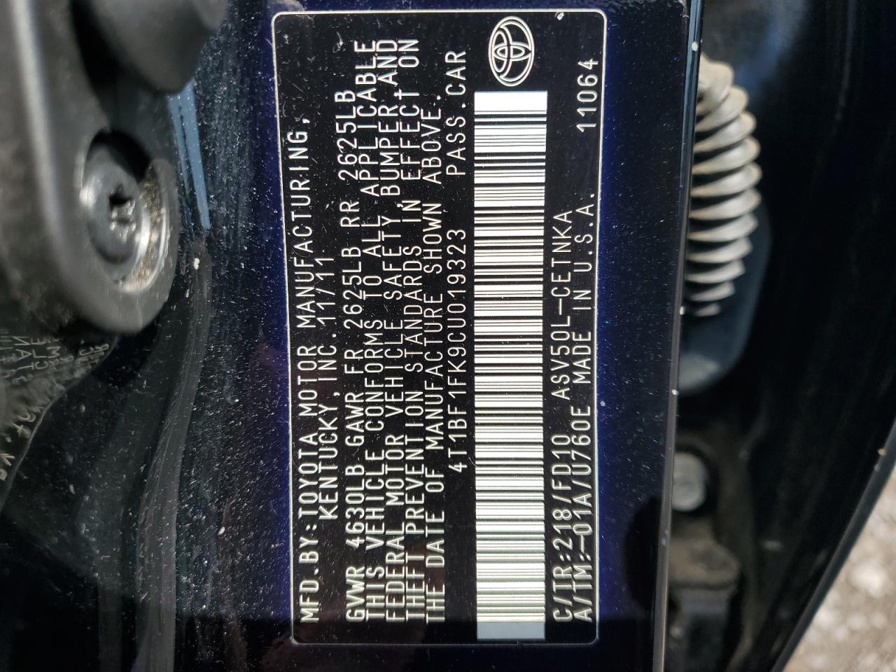 Колір ЧорнийЦиліндри 4VIN 4T1BF1FK9CU019323Стан НевідомоУшкодження Передня або задня