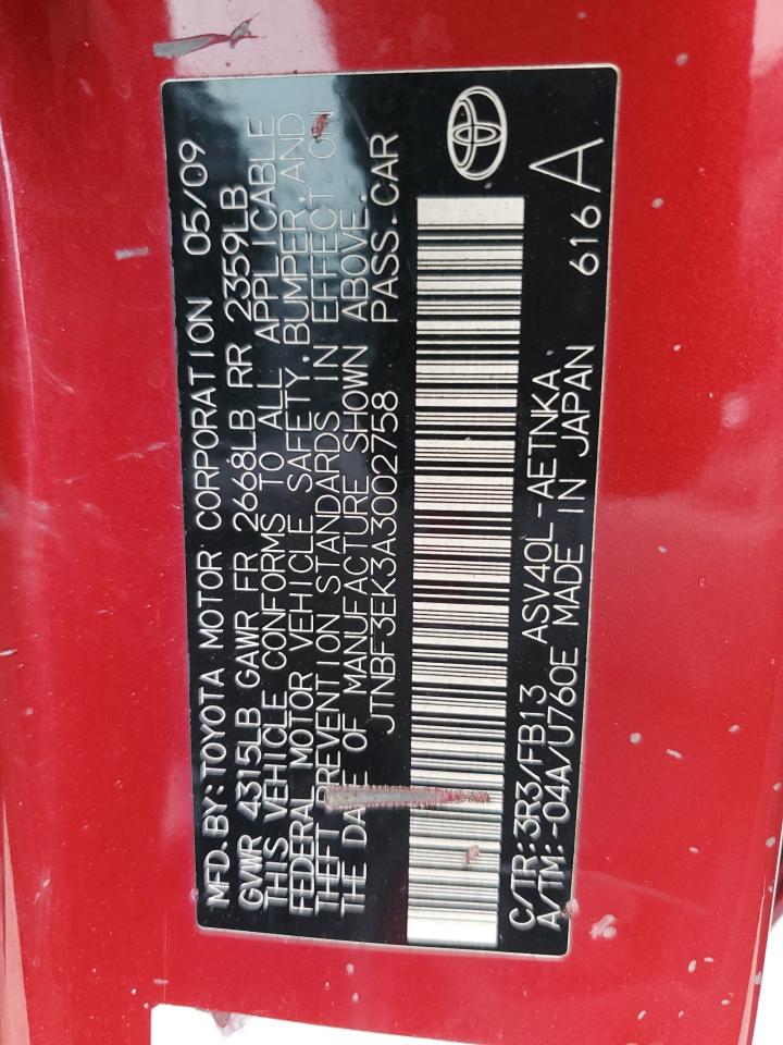 Колір ЧервонийЦиліндри 4VIN JTNBF3EK3A3002758Стан НевідомоУшкодження Передня або задня