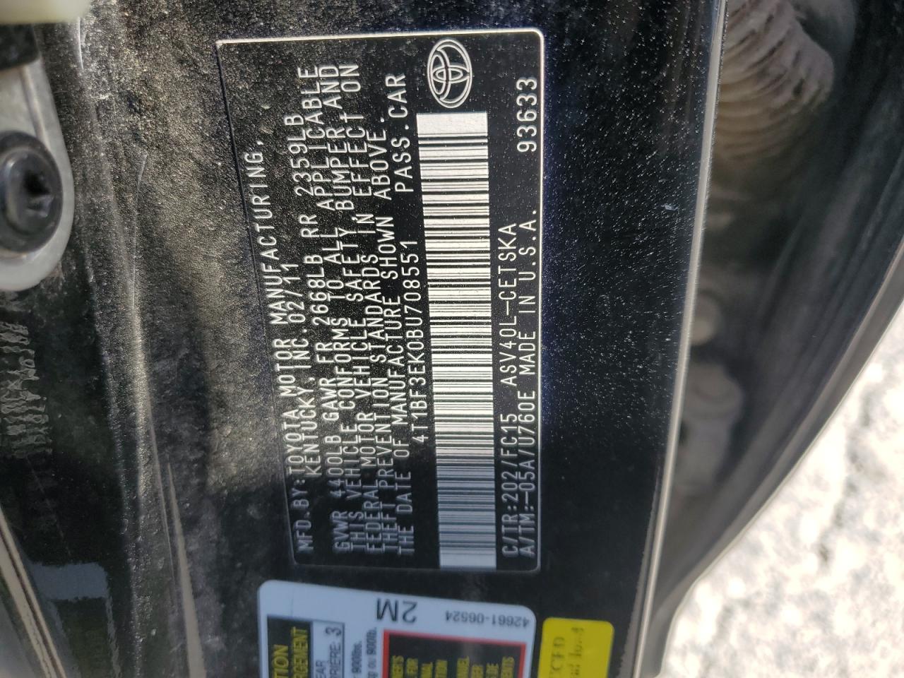 Колір ЧорнийЦиліндри 4VIN 4T1BF3EK0BU708551Стан НевідомоУшкодження Передня або задня