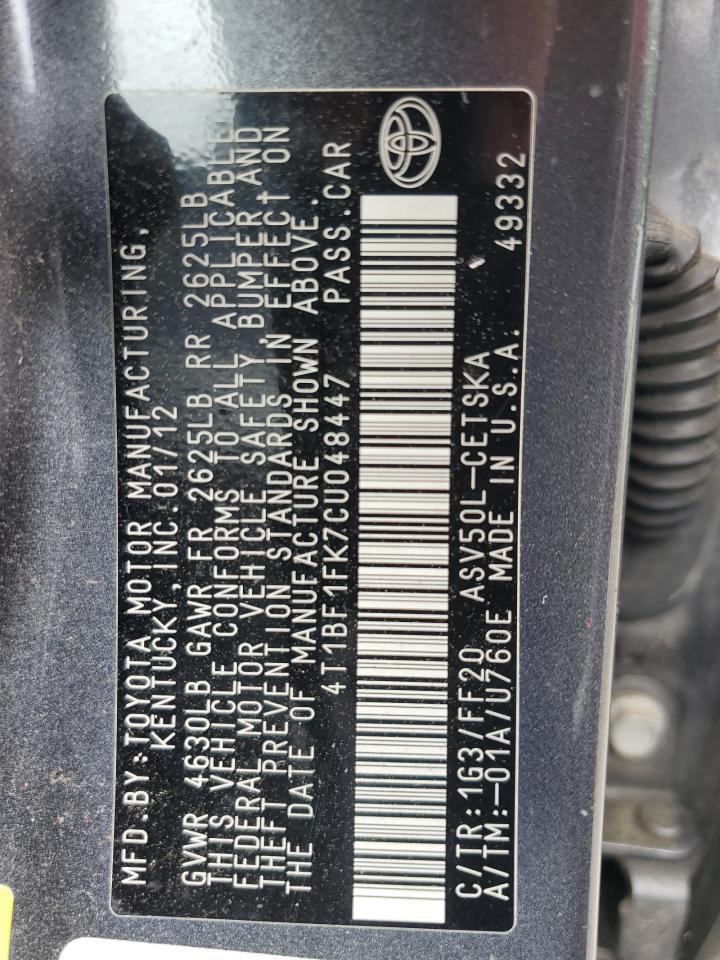 TOYOTA CAMRY 2.5 2012 р.в., (4T1BF1FK7CU048447) з США