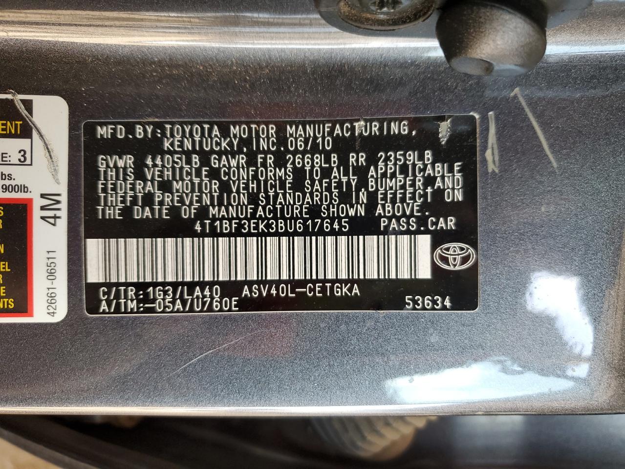 Колір СірийЦиліндри 4VIN 4T1BF3EK3BU617645Стан НевідомоУшкодження Механічні пошкодження