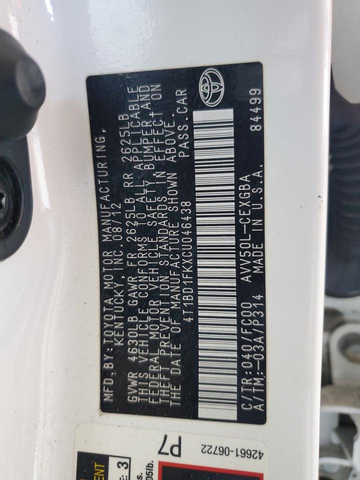 TOYOTA CAMRY HYBRID 2.5 2012 р.в., (4T1BD1FKXCU046438) з США