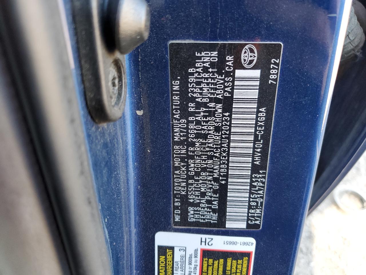 Колір СинійЦиліндри 4VIN 4T1BB3EK3AU120234Стан ЗаводитьсяУшкодження Передня або задня