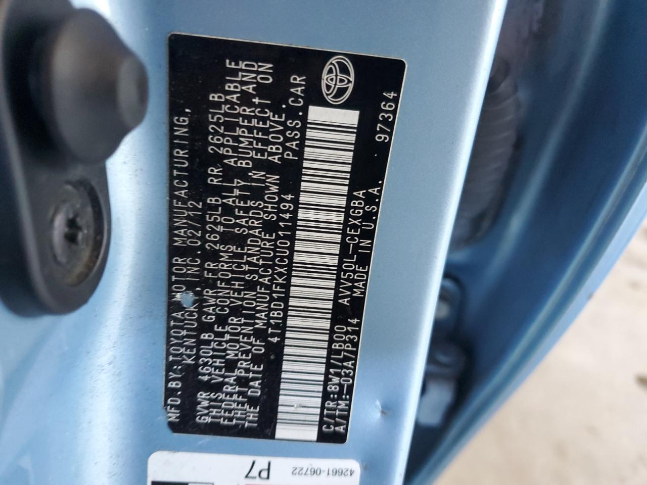 Колір СинійЦиліндри 4VIN 4T1BD1FKXCU011494Стан Заводиться та їде (перевірено)Ушкодження З боківДата аукціону 2025-11-06