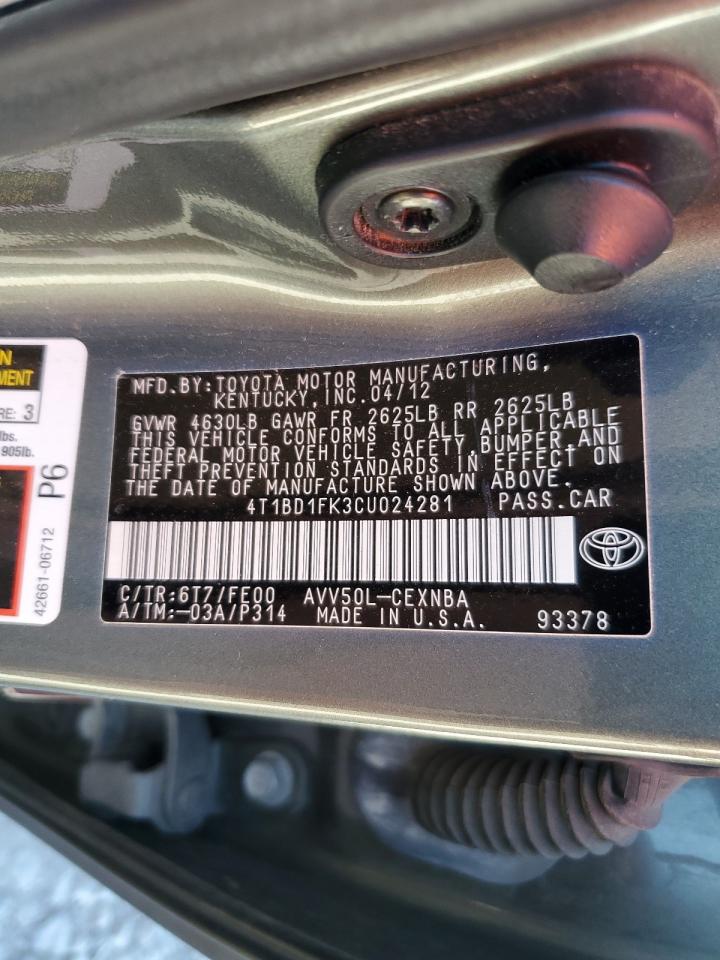 TOYOTA CAMRY HYBRID 2.5 2012 р.в., (4T1BD1FK3CU024281) з США