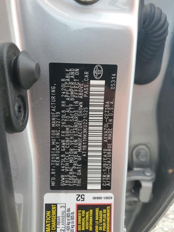 TOYOTA CAMRY 2.5 2019 р.в., (4T1B11HK9KU221525) з США