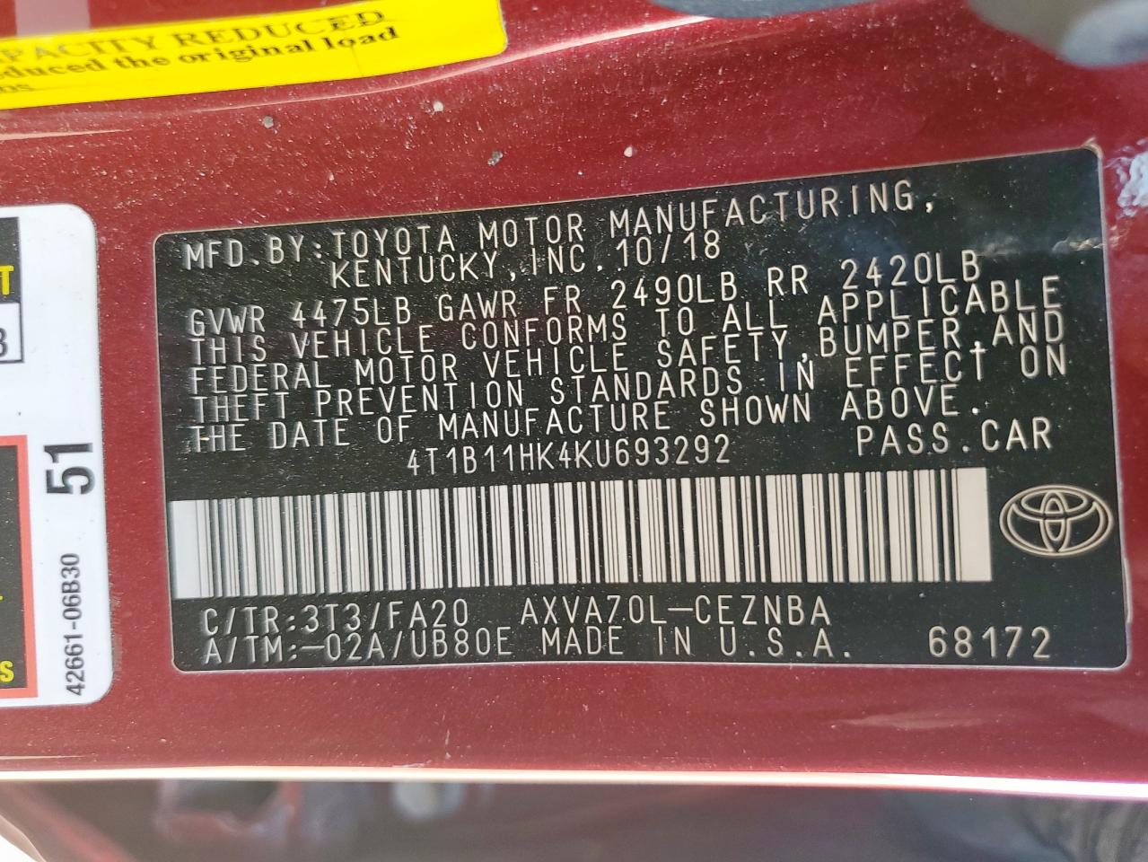 TOYOTA CAMRY 2.5 2019 р.в., (4T1B11HK4KU693292) з США