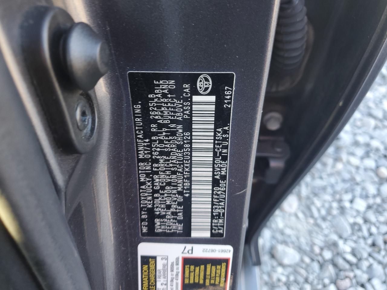 Колір СірийЦиліндри 4VIN 4T1BF1FKXEU358126Стан Заводиться та їде (перевірено)Ушкодження Передня або задня