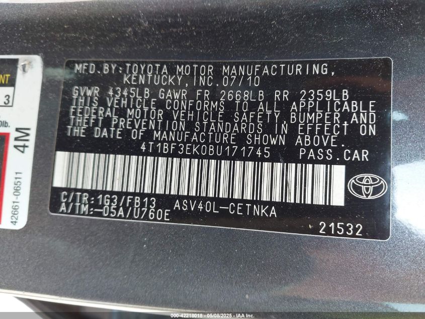 2011 TOYOTA CAMRY BASE