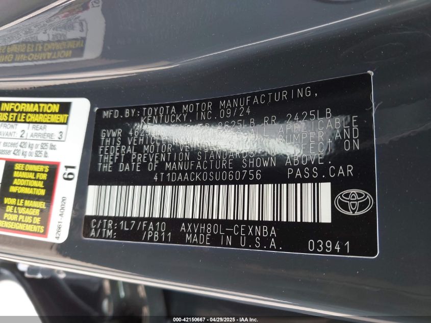 TOYOTA CAMRY 2.5 2025 р.в., Передній привід (4T1DAACK0SU060756) з США