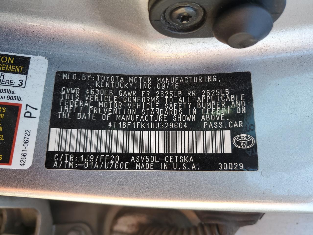 TOYOTA CAMRY 2.5 2017 р.в., (4T1BF1FK1HU329604) з США