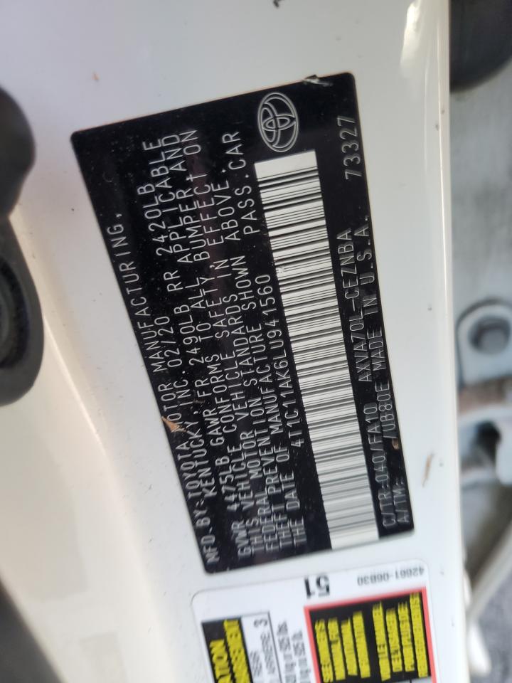 Колір БілийЦиліндри 4VIN 4T1C11AK6LU941560Стан ЗаводитьсяУшкодження Передня або задняДата аукціону 2025-11-03
