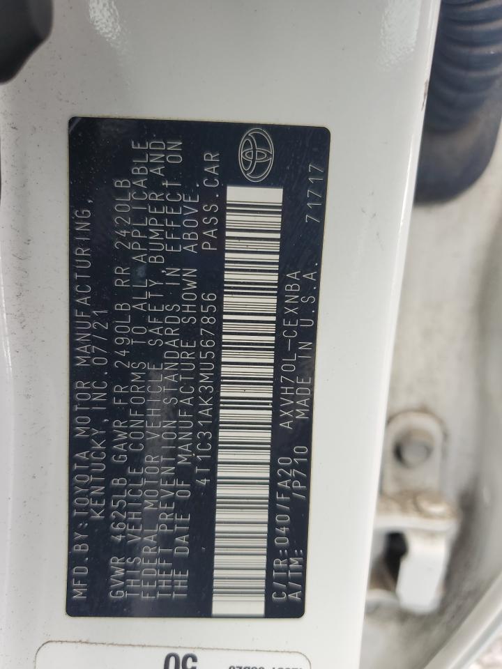 TOYOTA CAMRY 2.5 2021 р.в., (4T1C31AK3MU567856) з США