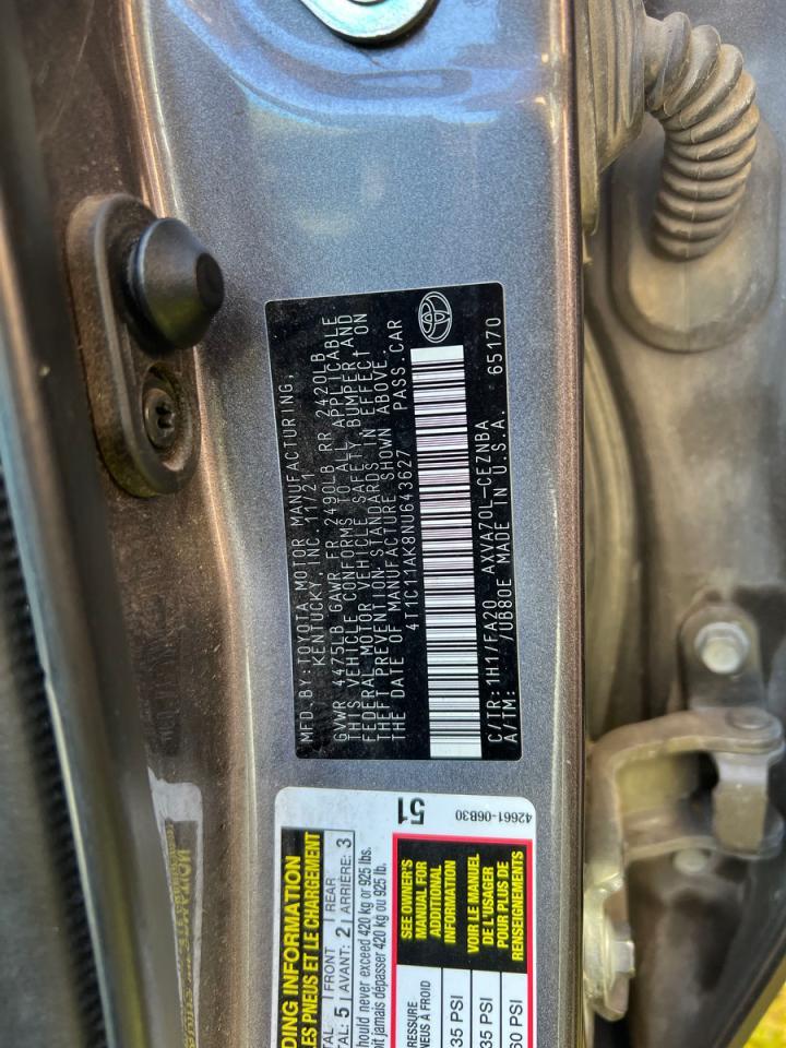 Колір СірийЦиліндри 4VIN 4T1C11AK8NU643627Стан Заводиться та їде (перевірено)Ушкодження НезначніДата аукціону 2025-11-13