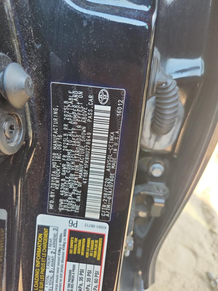 TOYOTA CAMRY 2.5 2017 р.в., (4T1BF1FK8HU278649) з США