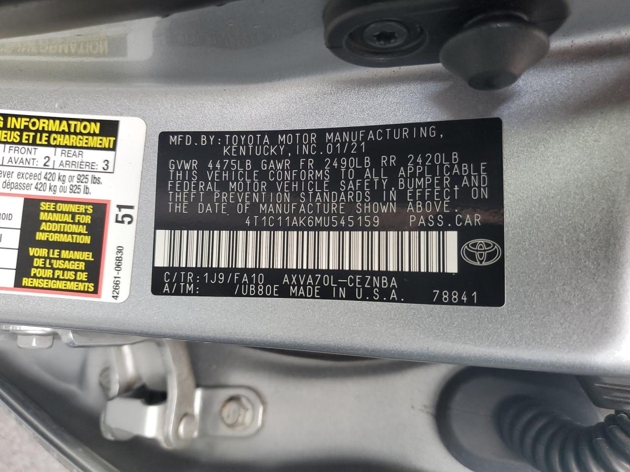 TOYOTA CAMRY 2.5 2021 р.в., (4T1C11AK6MU545159) з США