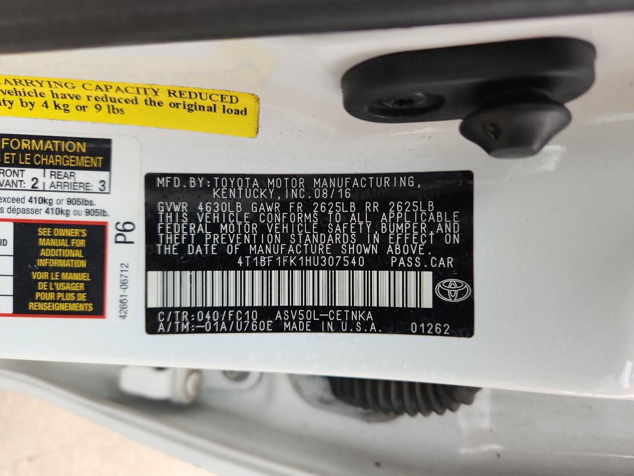 Колір БілийЦиліндри 4VIN 4T1BF1FK1HU307540Стан ЗаводитьсяУшкодження З боків