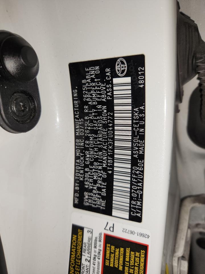 Колір БілийЦиліндри 4VIN 4T1BF1FK3FU044772Стан ЗаводитьсяУшкодження Передня або задня