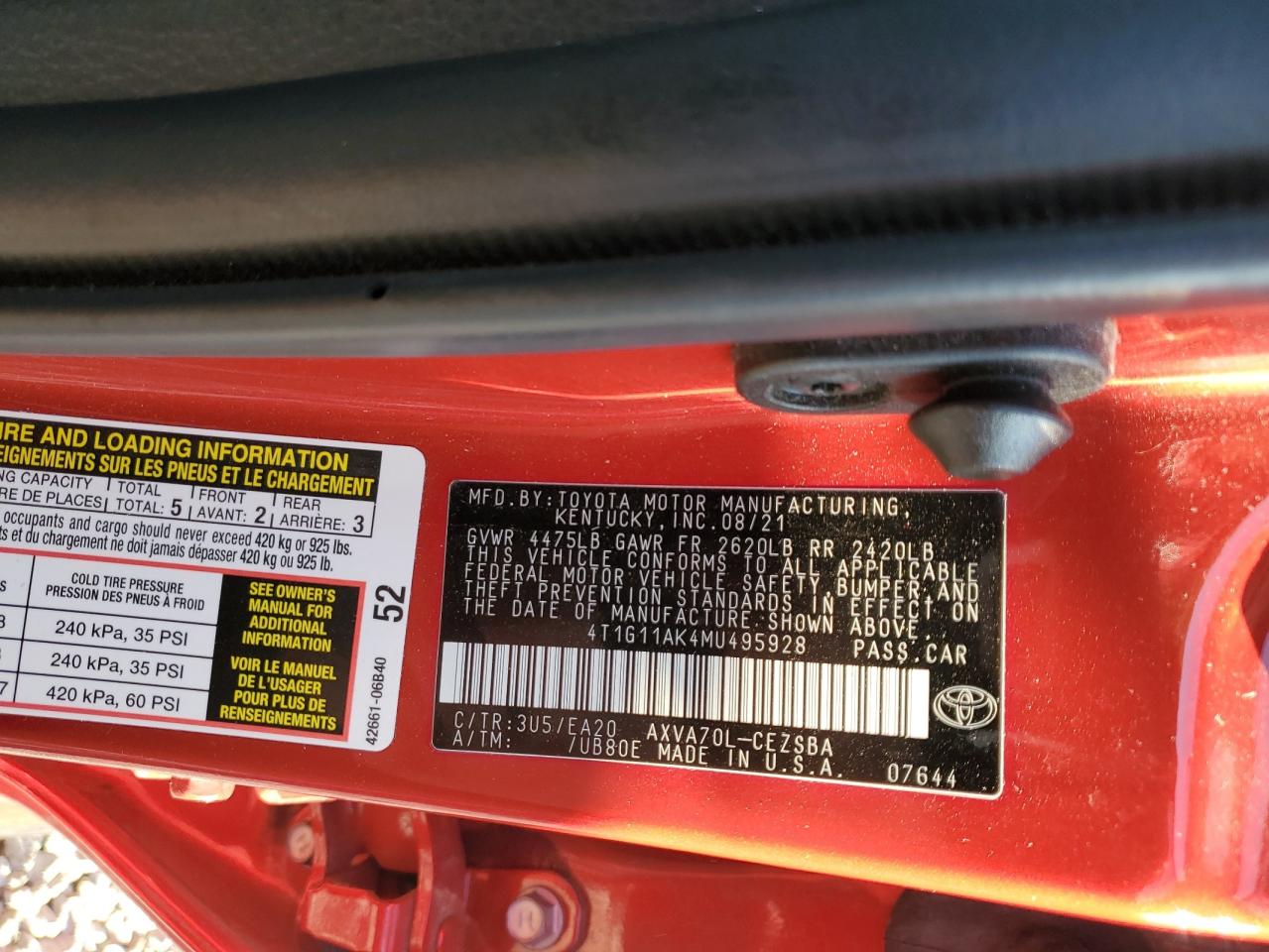 TOYOTA CAMRY 2.5 2021 р.в., (4T1G11AK4MU495928) з США