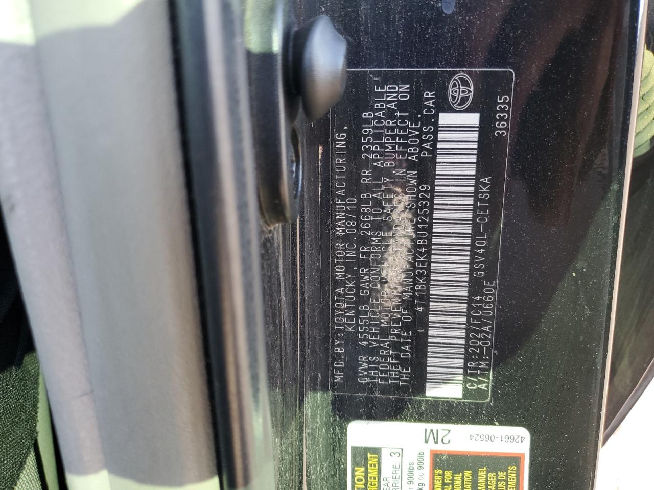 Колір ЧорнийЦиліндри 6VIN 4T1BK3EK4BU125329Стан ЗаводитьсяУшкодження Передня або задня