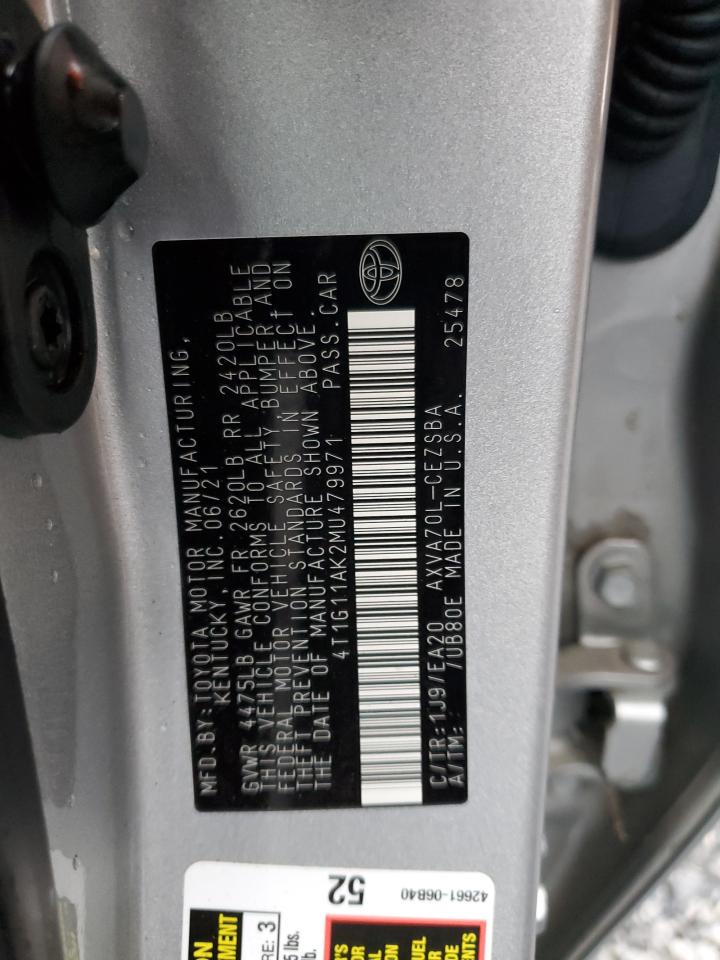 TOYOTA CAMRY 2.5 2021 р.в., (4T1G11AK2MU479971) з США