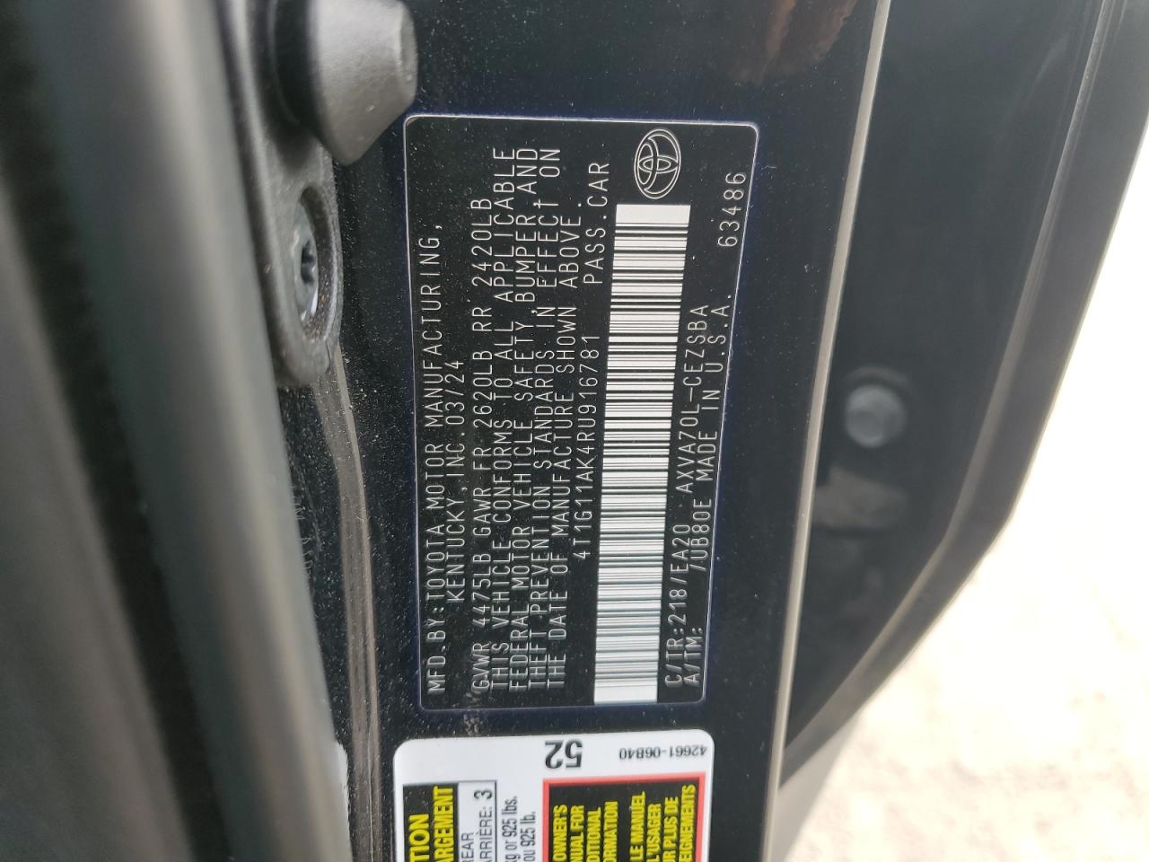 TOYOTA CAMRY 2.5 2024 р.в., (4T1G11AK4RU916781) з США